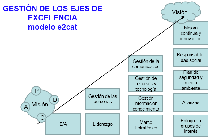 Organización del Modelo de Excelencia E2Cat_ ejes estratégicos y ciclo pdca