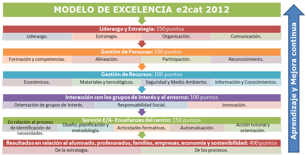 El Modelo de Excelencia E2cat es una adaptación del modelo EFQM para Centros Educativos realizada por la Asociación Catalana para la Excelencia (QUALIcat) en 2009.Qualicat Asociación Catalana para la Excelencia