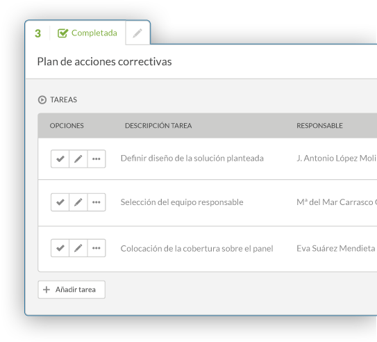 Empiece por la definición de las reglas a seguir en la ejecución de las listas de chequeo y el establecimiento de acciones correctivas, continúe por la automatización de todo el proceso de implantación de las mejoras y finalice en la toma de decisiones mediante una potente herramienta de Business Intelligence.