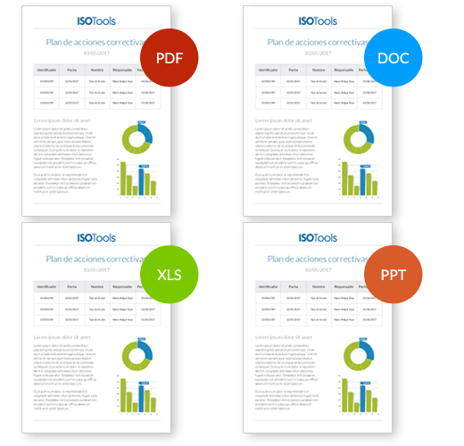 Obtenga los reports en múltiples formatos: PDF, DOC, XLS, PPT.